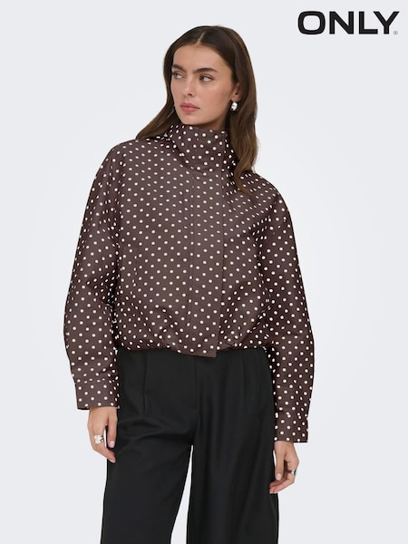 ONLY Brown Polka Dot Funnel Neck Jacket