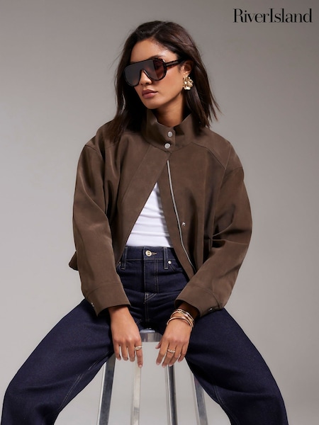 River Island Brown Zip Through Drawstring Shacket