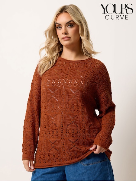 Yours Curve Red Pointelle Stitch Long Sleeve Jumper
