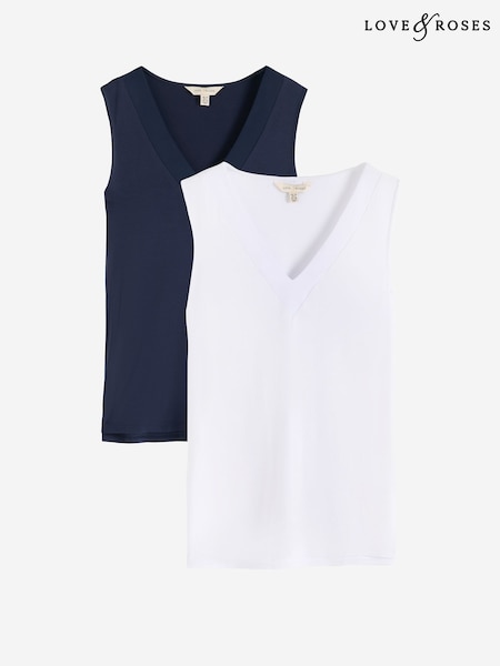 Love & Roses X2 Navy Blue and White V-Neck Chiffon Trim Jersey Vest