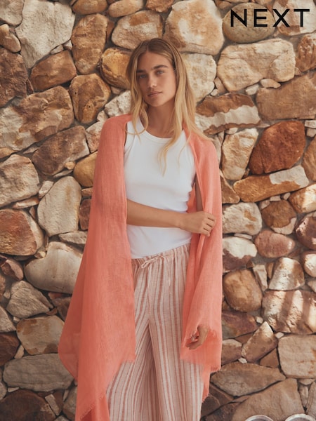 Pink Herringbone Linen Rich Cropped Slim Trousers