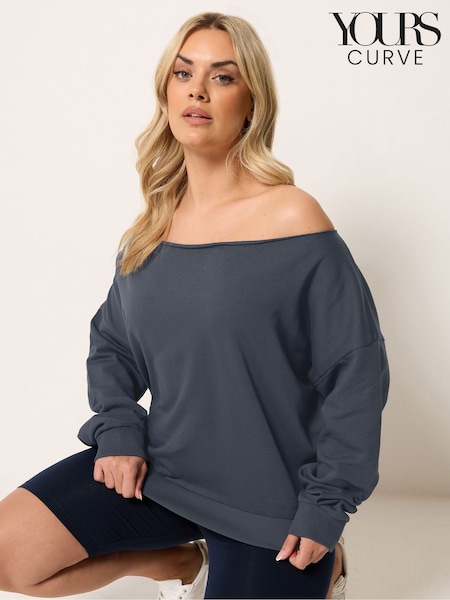 Yours Curve Blue Limited Game Day Embroidered Rugby Sweatshirt