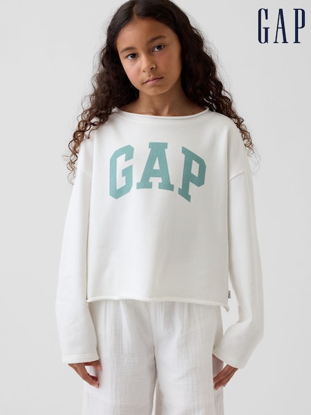 Gap White French Terry Wide-Neck Logo Sweatshirt (4-13yrs)