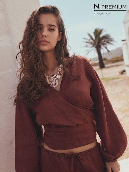 Rust Brown Linen Wrap Top