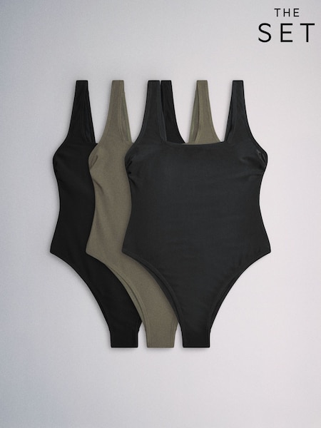 The Set 3 Pack Squared Scoop Neck Swimsuit Black/Green