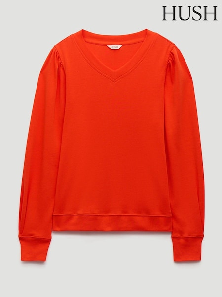 Hush Orange Emily V-Neck Puff Sleeve Top