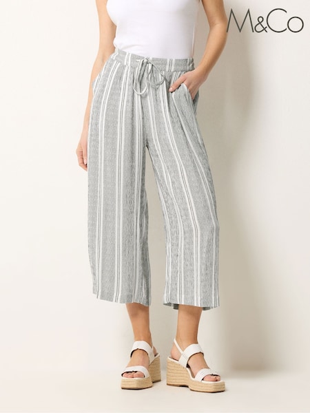 M&Co Grey Stripe Cropped Wide Leg Trousers