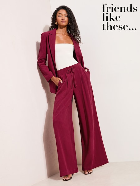 Friends Like These Burgundy Red Petite Super Wide Leg Trousers with Linen