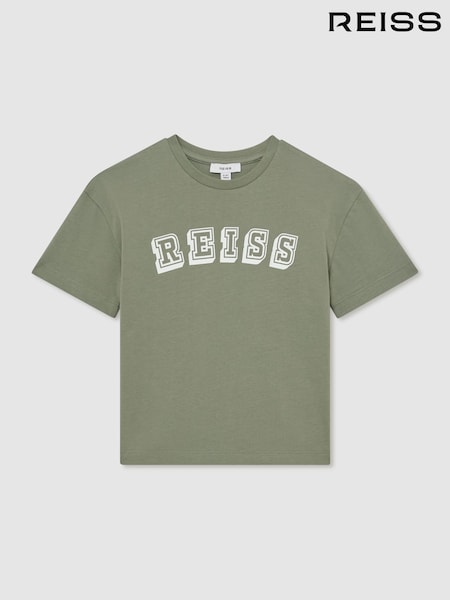 Reiss Sage/Off White Leonard 13-14 yrs Cotton Logo-Print Oversize T-Shirt