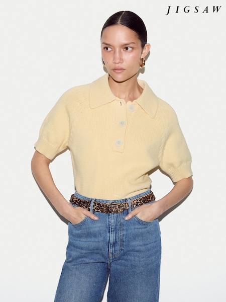 Lemon Yellow Shirred Short Sleeve Crew Neck Top