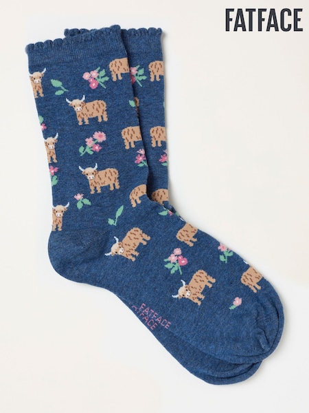 FatFace Navy Highland Cow Socks