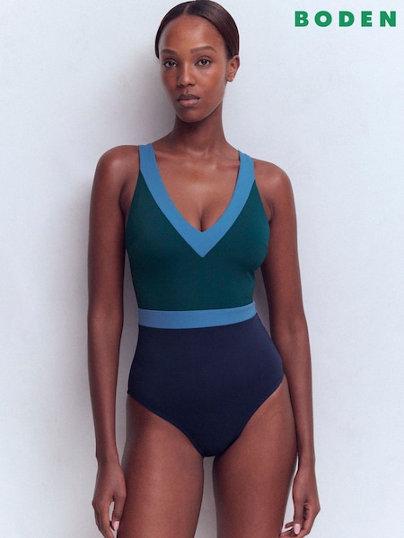 Boden Blue Mykonos Deep V-Neck Swimsuit