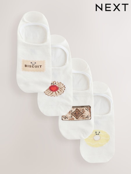 White Biscuit Motif Invisible Socks 4 Pack