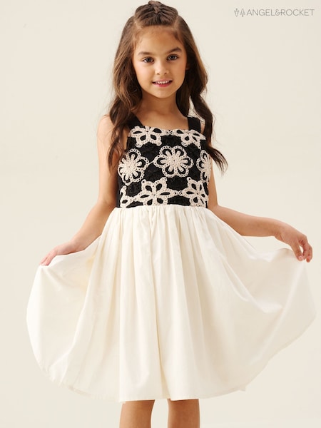 Angel & Rocket Cream Sabrina Ecru Floral Crochet Dress