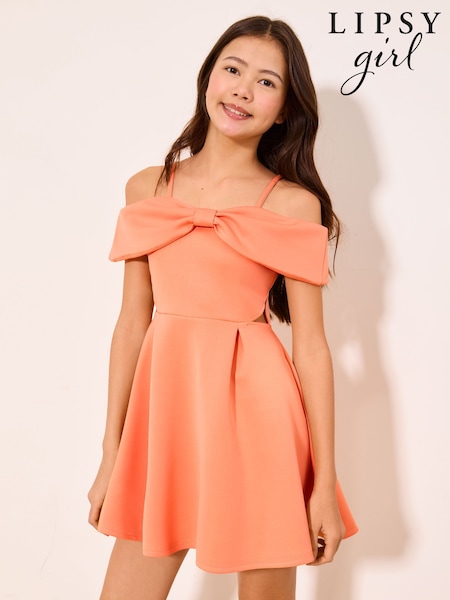 Coral Pink Bow Scuba Cut Out Dress (5-16yrs)