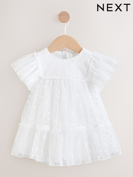 White Bow Mesh Baby Dress (0mths-2yrs)