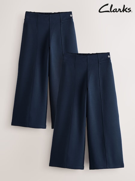 Clarks Navy Wide Leg Pull On School Trousers 2 Pack