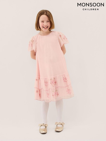 Monsoon Pink Heart Embellished Mesh Party Dress