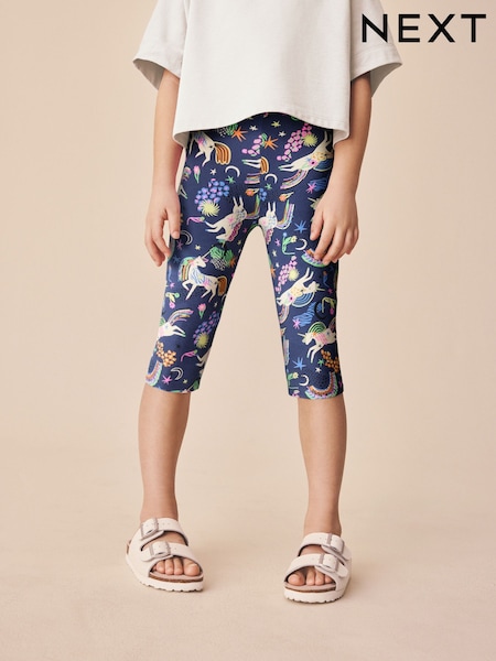 Navy Blue Unicorn Cropped Leggings (3-16yrs)