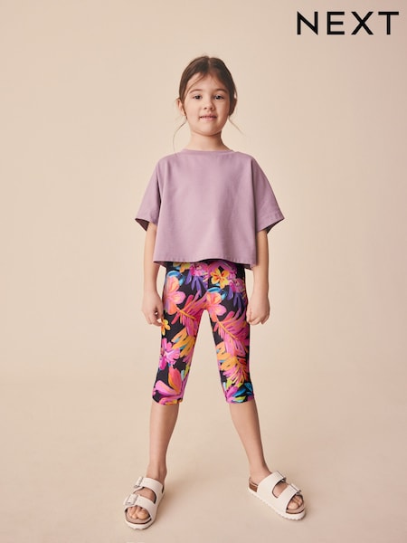 Pink/Purple Hibiscus 4 Pack Cropped Leggings (3-16yrs)