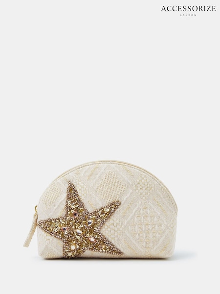Accessorize Natural Embellished Starfish Make Up Bag