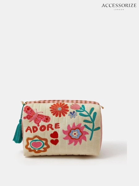 Accessorize Cream Floral Print Quilted Make Up Bag