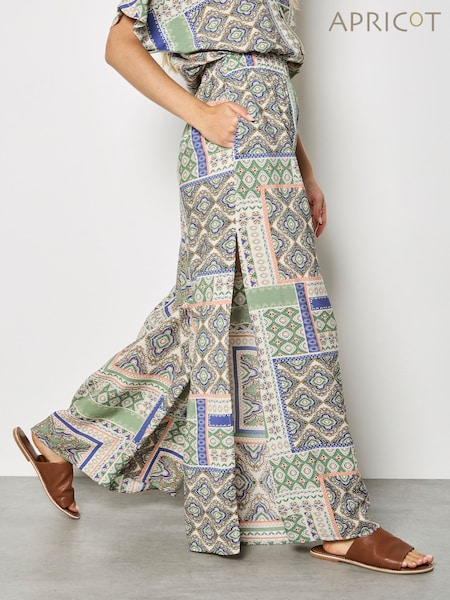 Apricot Natural Folk Patchwork Wide Leg Trousers