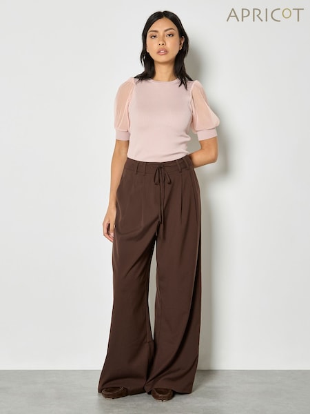 Apricot Brown Pleat Detail Wide-Leg Trousers