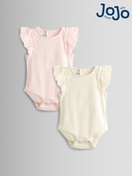JoJo Maman Bébé Pink & Cream 2-Pack Broderie Frill Sleeve Body