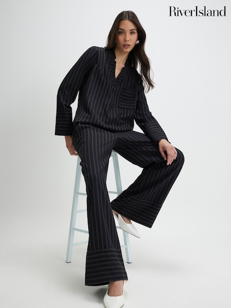 River Island Grey Pinstripe Drawstring Wide Leg Trousers