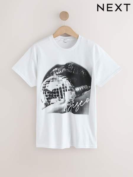 White Graphic Disco Ball Oversized Cotton Rich T-Shirt