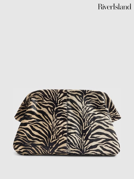 River Island Black Leather Zebra Print Clutch Bag