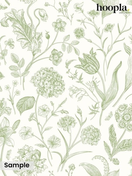 Hoopla Walls Sage Floral Toile Sage A4 Wallpaper Sample