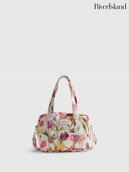 Ecru Floral Printed Baby Hooded Crinkle Woven Pramsuit (0mths-2yrs)