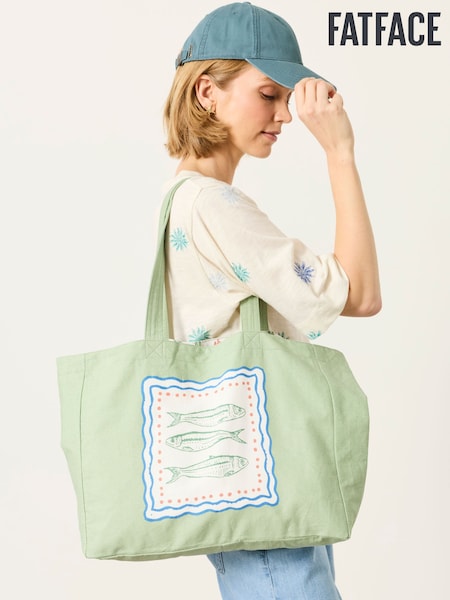 FatFace Green Fish Reversible Tote Bag