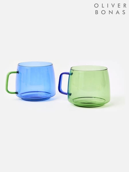 Oliver Bonas Set of 2 Blue Stacking Glass Mugs
