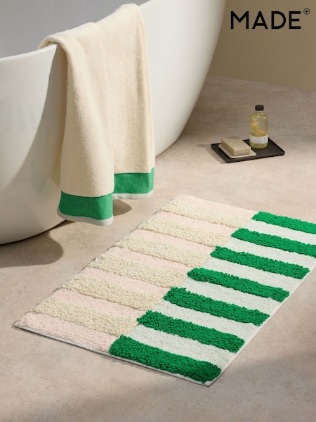 MADE.COM Pink/Green Etly Stripe 100% Cotton Bath Mat
