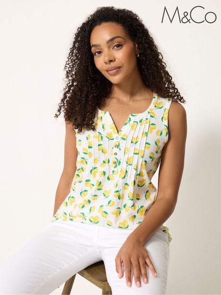 M&Co Yellow Sleeveless Henley Top