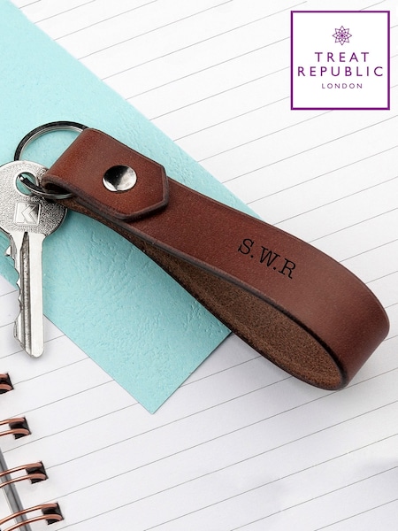 Personalised Luxury Brown Leather Keyring by Treat Republic