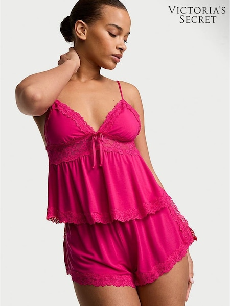 Victoria's Secret Pop Pink Lace Trim Modal Cami Set
