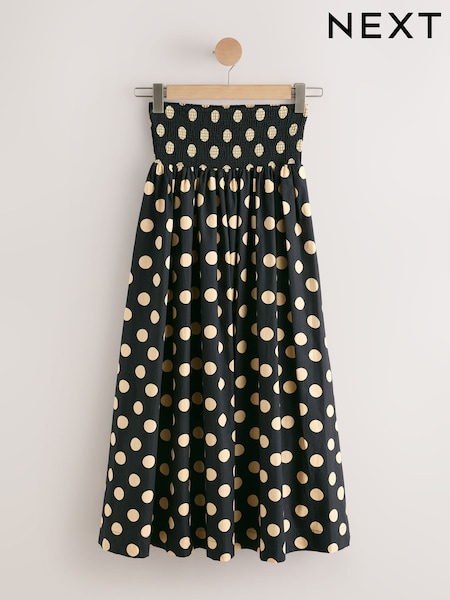 Black/Yellow Spot Shirred Maxi Skirt