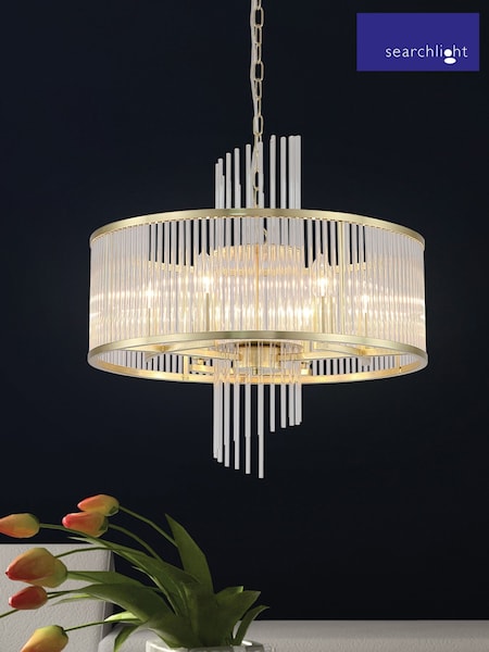 Searchlight Gold and Clear Vernon 6 Light Pendant, Metal With Glass Rods
