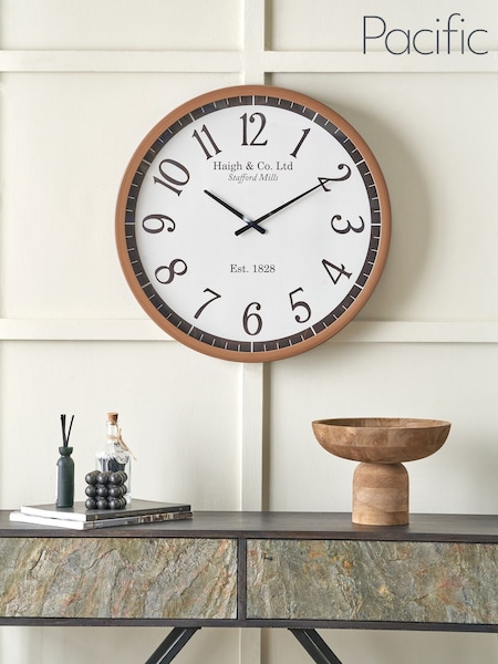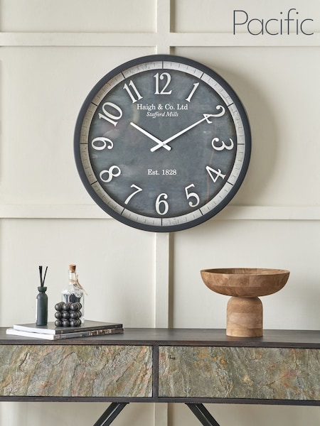 Pacific Black Wood Effect Round Wall Clock