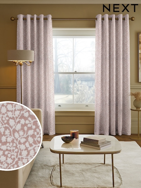 Sage Green In Bloom Floral Eyelet Lined Curtains