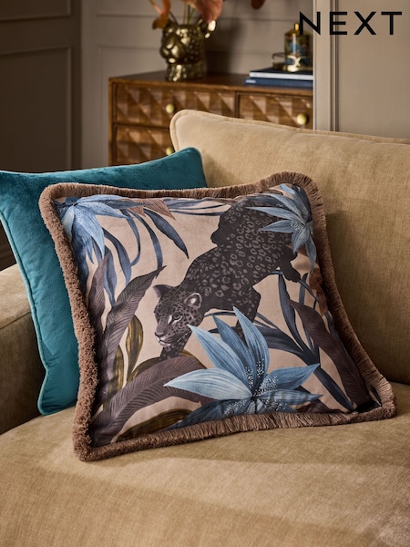 Blue/Brown 50 x 50cm Printed Panther Cushion
