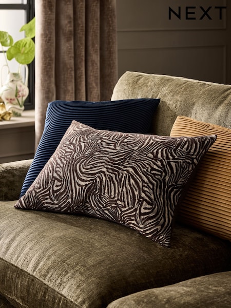 Brown 40 x 59cm Cut Velvet Abstract Zebra Cushion