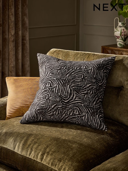 Brown 59 x 59cm Cut Velvet Abstract Zebra Cushion