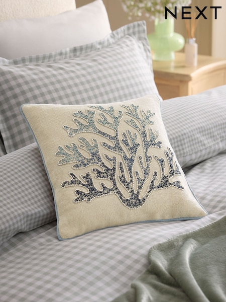 Blue 35 x 35cm Embellished Ocean Coral Cushion