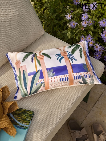 Green 50 x 30cm Indoor Outdoor Villa Palm Printed Cushion