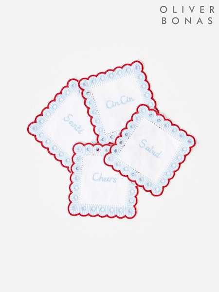 Oliver Bonas Set of 4 Blue Gingham Cocktail Napkins